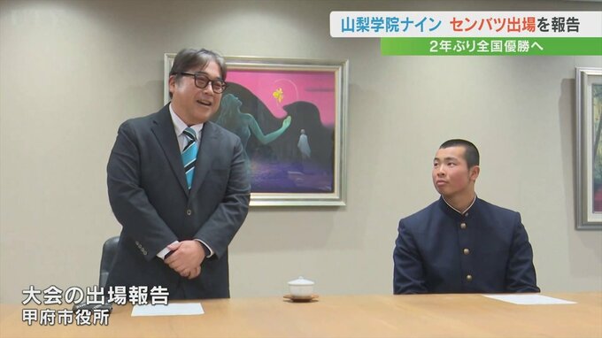 3月18日に開幕するセンバツ高校野球で2年ぶりの優勝を目指す山梨学院高校が地元甲府市に大会出場を報告しました。