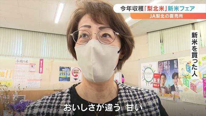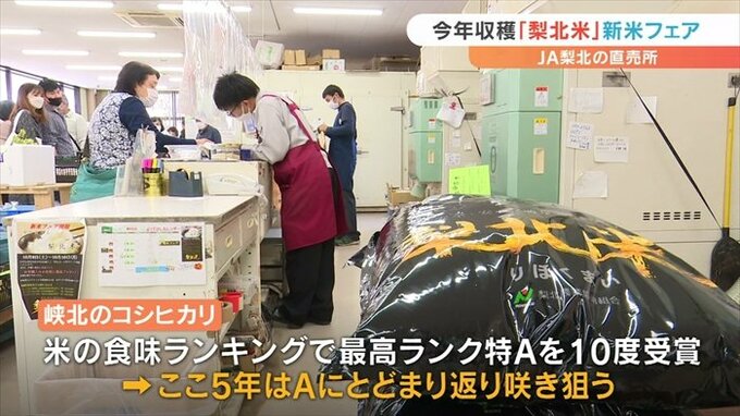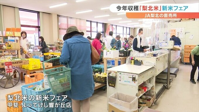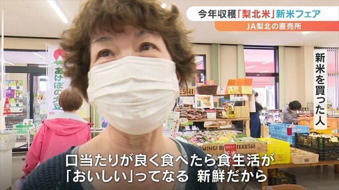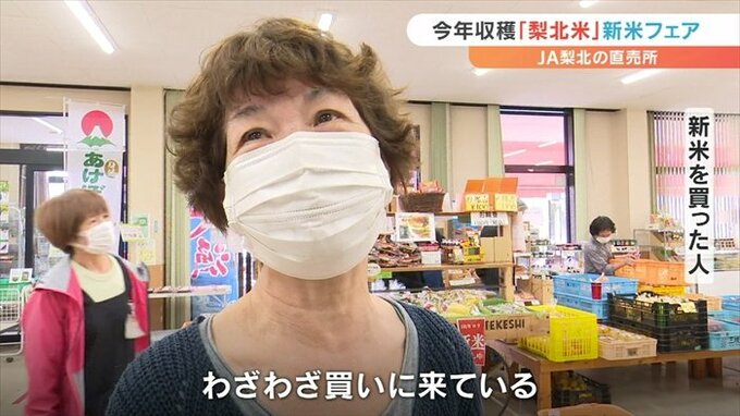 販売は北杜市と韮崎市、それに甲斐市の3か所の直売所で行われ、このうち甲斐市では去年より3割ほど多く客が訪れ、次々と新米を買い求めていました。
