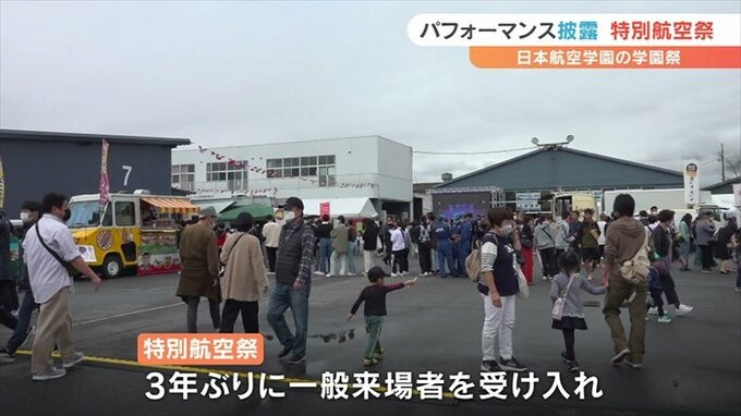 この3連休は、学園祭の「特別航空祭」が開かれました。新型コロナの感染拡大の影響で、一般の来場者を受け入れるのは3年ぶりで、キッチンカーや模擬店が並び、家族連れなどで賑わいました。
