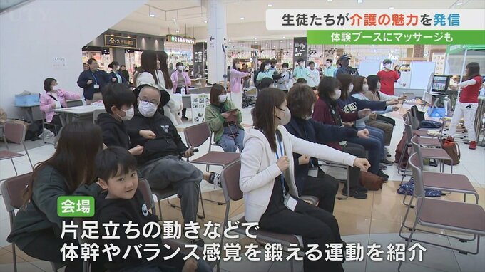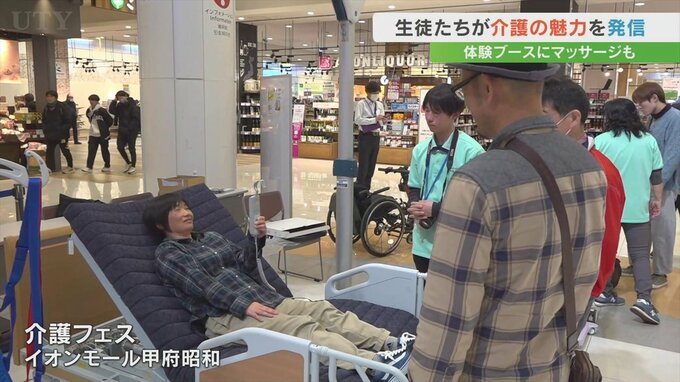 専門学校の生徒が介護の魅力を伝えるイベントが山梨県昭和町で行われました。