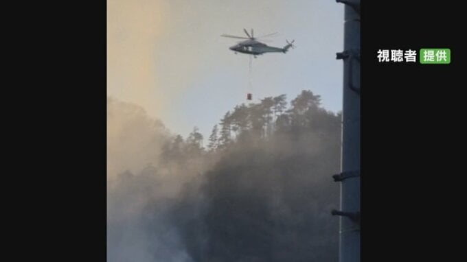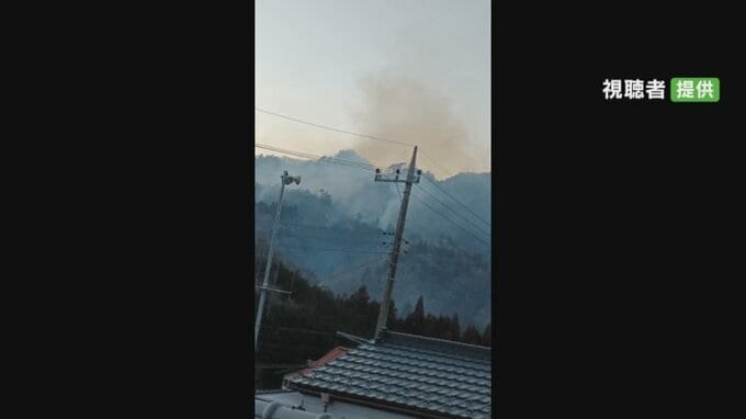 消防によりますと火は林野にも燃えうつっているとみられ午後5時半現在、消火活動が続いています。