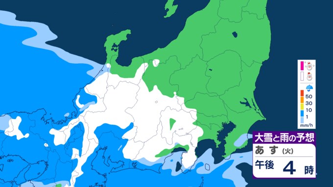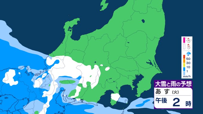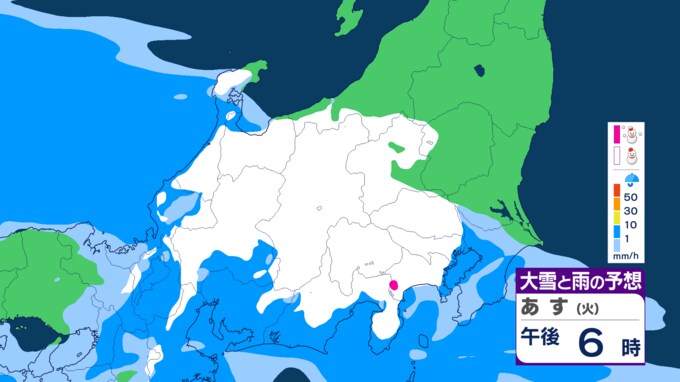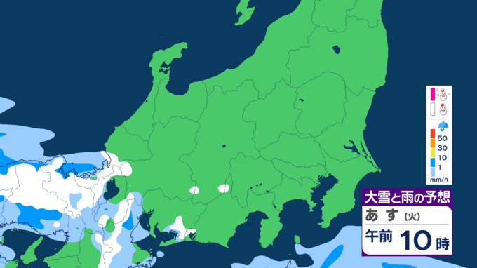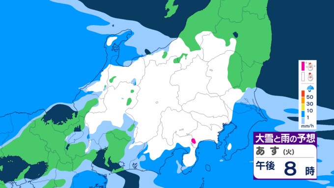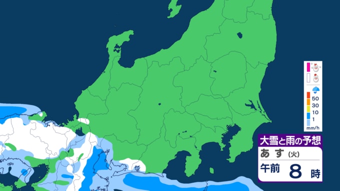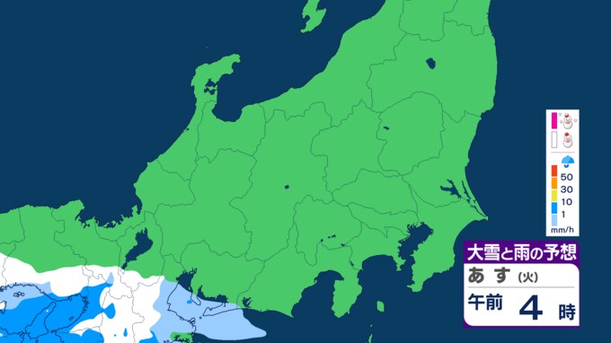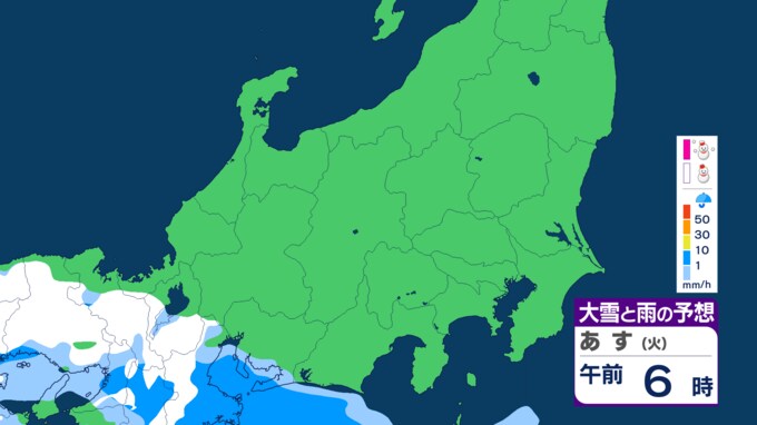 【大雪情報】関東甲信地方 山沿いや山地を中心に大雪、南部の平地でも積雪となる所が【大雪と雨のシミュレーション】