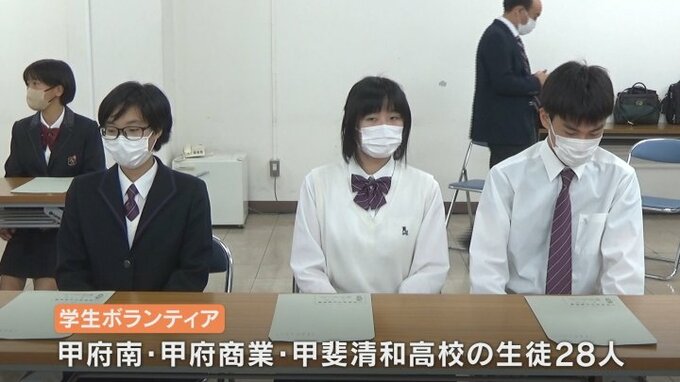 参加するのは甲府南、甲府商業、甲斐清和の3つの高校の生徒28人。