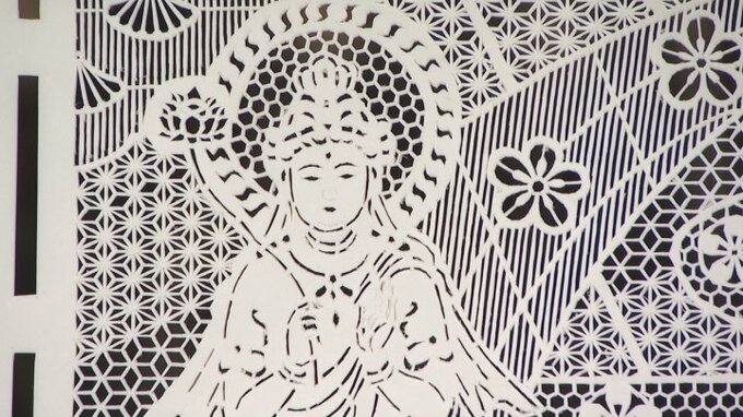 和紙に繊細な透かし細工を施す切子の展示が、山梨県南アルプス市で開かれています。