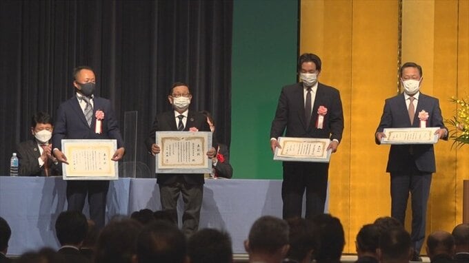 甲府商工会議所の創立143周年の記念式が開かれ、長年にわたり会議所の活動に協力してきた企業や個人、およそ200人に表彰状が贈られました。