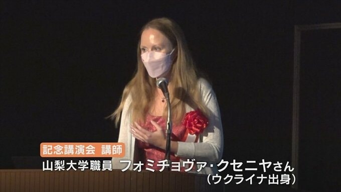 また、ウクライナ出身で山梨大学職員のフォミチョヴァ・クセ二ヤさんが講演しました。