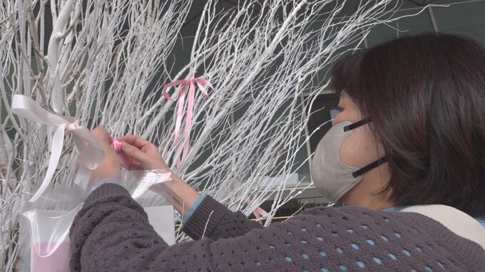 また会場では募金活動が行われ、来場者がピンクリボンを木の枝に結ぶ姿もありました。