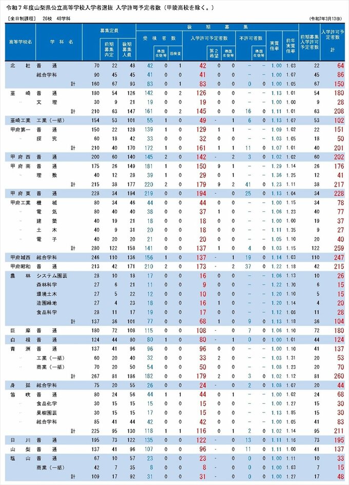 公立高校入学許可予定者数 [全日制課程]①
