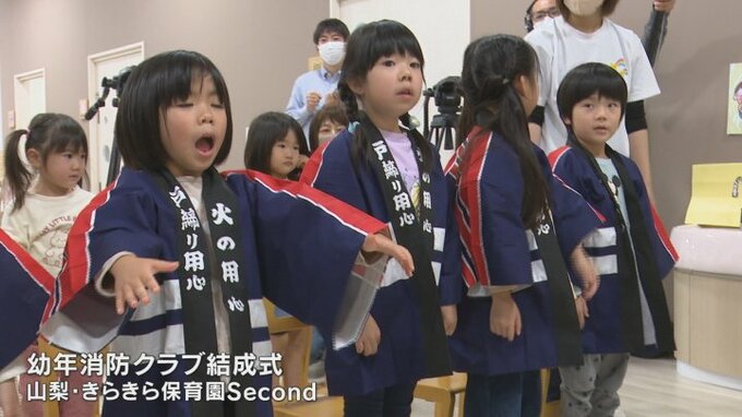 10月14日は、きらきら保育園Secondで結成式が行われ、出席した20人の園児たちは「火の用心」と書かれた法被を着て、歌と発表で火に気を付けることを誓いました。