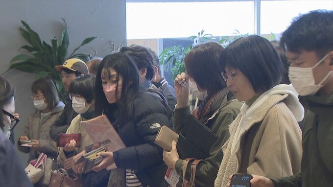 「fumottoの新規会員、受付会場です。こちらでは、多くの人が並んでいます」