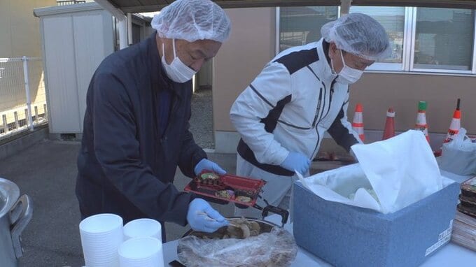 弁当の無料配布は甲府市大里町に本社がある地建工業が地域貢献活動の一環として初めて実施しました。