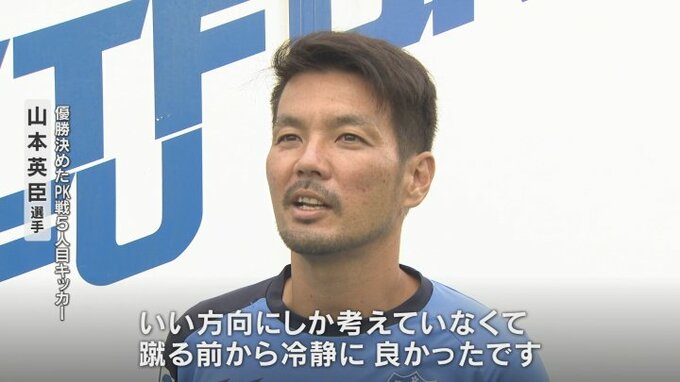 ハンド取られたときは、サッカーの神様は残酷だなと思ったんですけど。あの場面で自分が勝負を決められるところに立てる。いい方向にしか考えていなくて蹴る前から冷静に。良かったです。