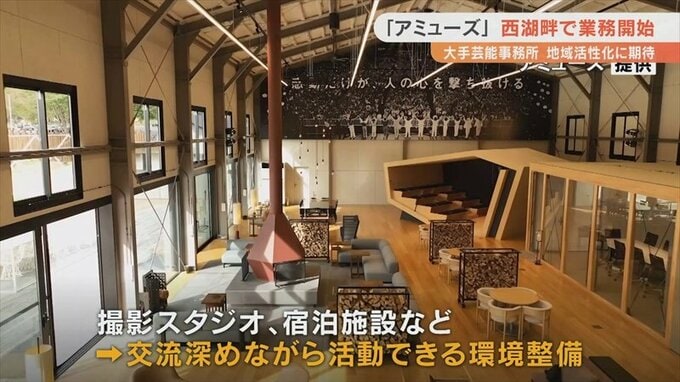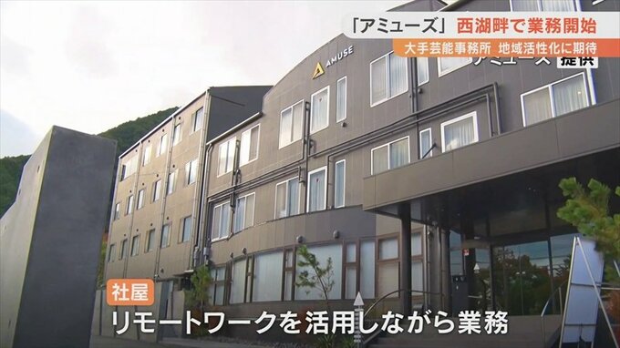 大手芸能事務所「アミューズ」の新しい本社が山梨県富士河口湖町に完成し、業務がスタートしました。
