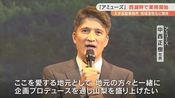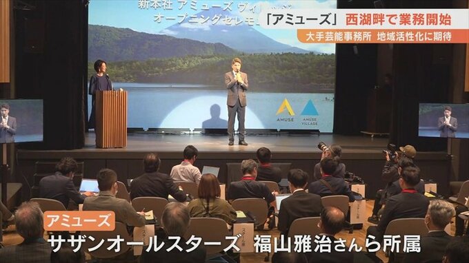 アミューズはサザンオールスターズや福山雅治さんらが所属する大手芸能事務所で、新本社の業務開始で去年6月、山梨県と結んだ協定に基づく地域活性化の取り組みも期待されます。