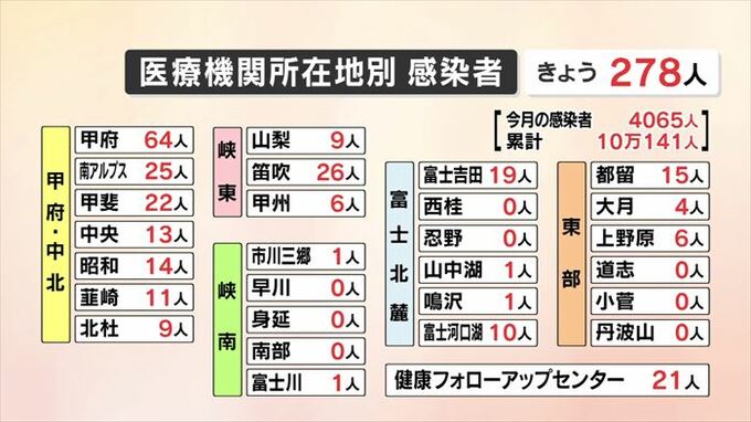 新型コロナウイルスについて山梨県内では10月20日、新たに278人の感染が発表されました。