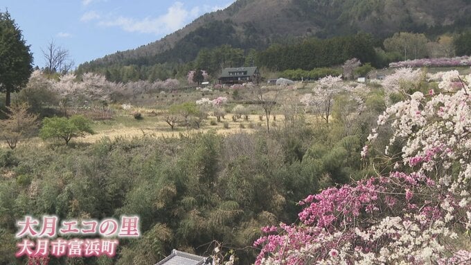 山梨県大月市でサクラやハナモモが見頃となり、公園に春爛漫の世界が広がっています。