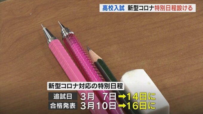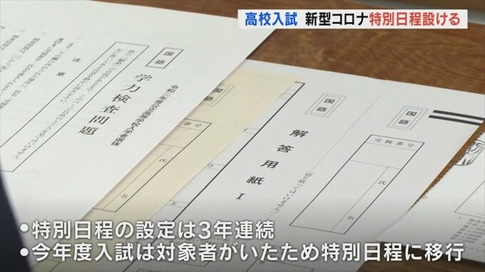 県教委が特別日程を設けるのはこれで3年連続で、今年度入試では対象となる受験生が10人いたため特別日程に移行して実施されました。