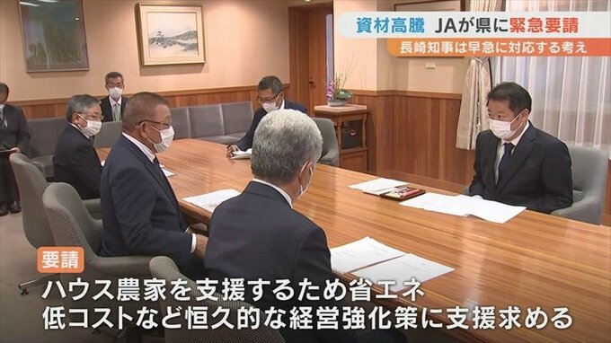 ハウス栽培の省エネ化など経営の強化に向けたサポートを求め、長崎知事は早急に対応する考えを示しました。