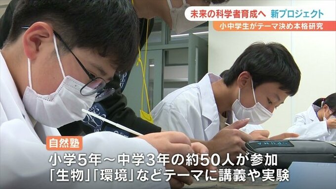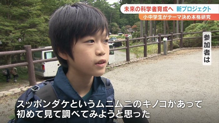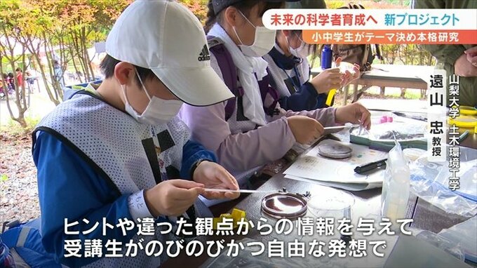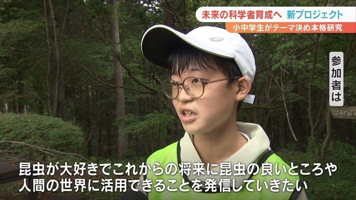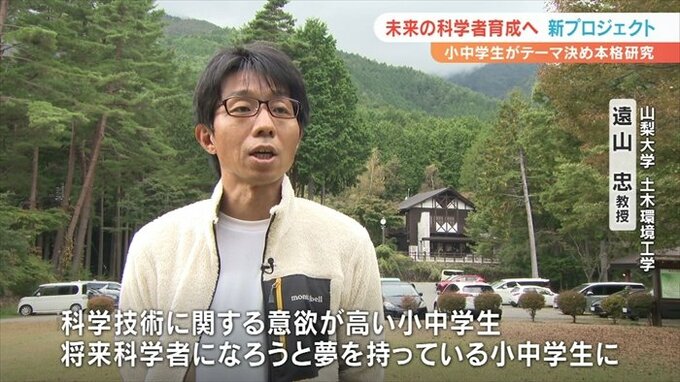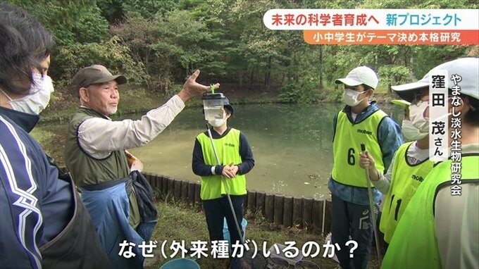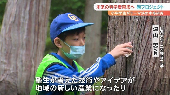 小中学生が参加するもので、山梨県内の森林などでの課外実習や研究を通じて将来の科学者を育成しようとしています。