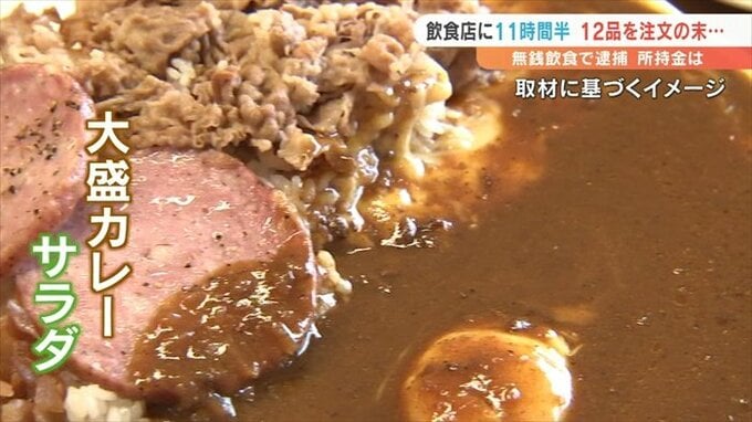 トッピングが大量にのった大盛のカレーにトレーに乗り切らないほどのサイドメニュー。これは無銭飲食の疑いで逮捕された男が食べたものの一部です。