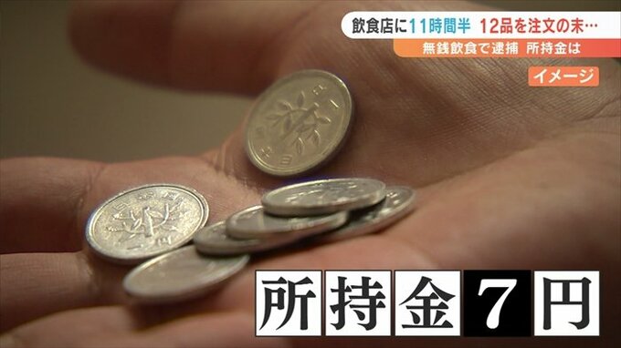 「金はないが飯を食ってしまった」無銭飲食で男を現行犯逮捕 飲食店に11時間半、大盛カレーやサラダなど12品を注文 2022年10月28日(金) 18:58 国内 店を出ていったところを店員が呼び止めて通報し駆け付けた警察官が無銭飲食の現行犯で逮捕しました。 逮捕されたのは住所・職業不詳の44歳の男で、所持金は7円だったということです。