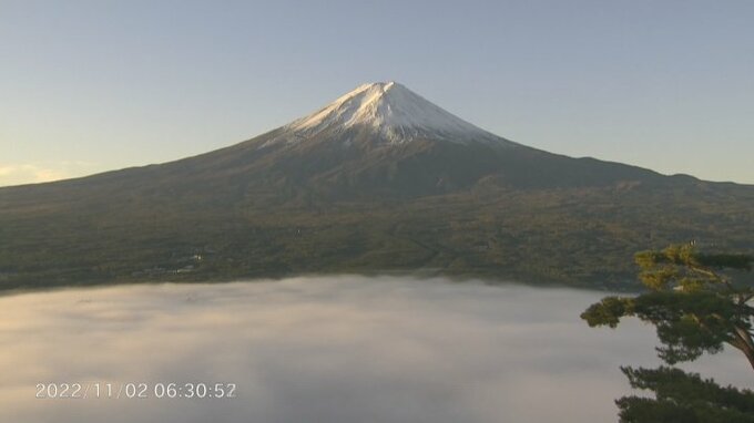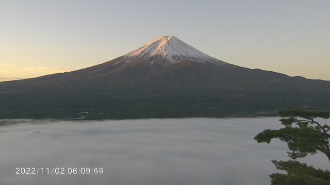富士山の麓には雲海ができ、朝日を浴びて白く輝きました。