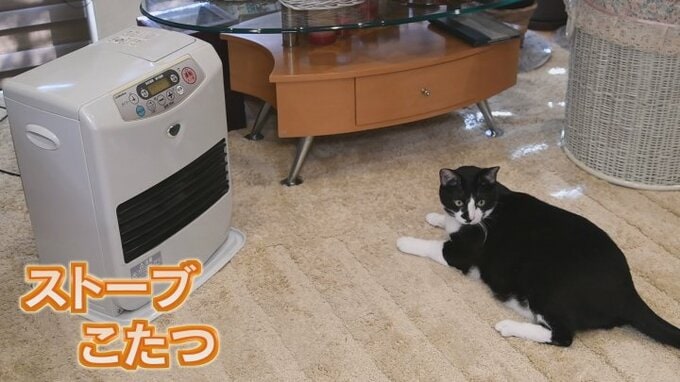 石油ストーブです。電気もガスも高いからね、上がっていてね。石油もあがってるけどね。