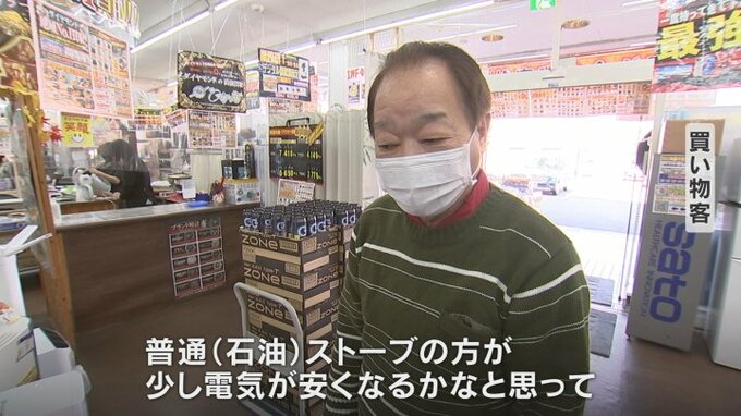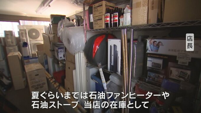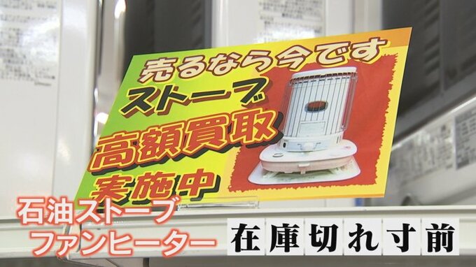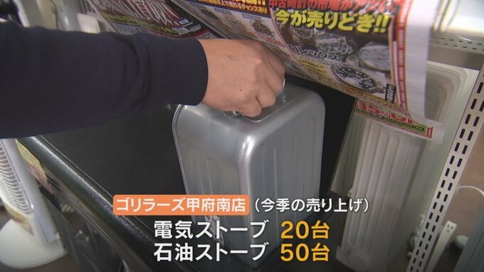今シーズンの売り上げは、石油ストーブが電気ストーブの2.5倍に上ります。