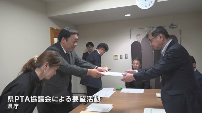 要望活動を行ったのは県PTA協議会の代表らで、県総合県民支援局を訪れ要望書を手渡しました。