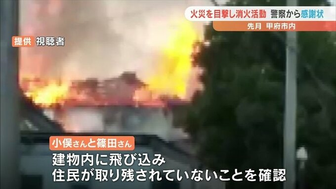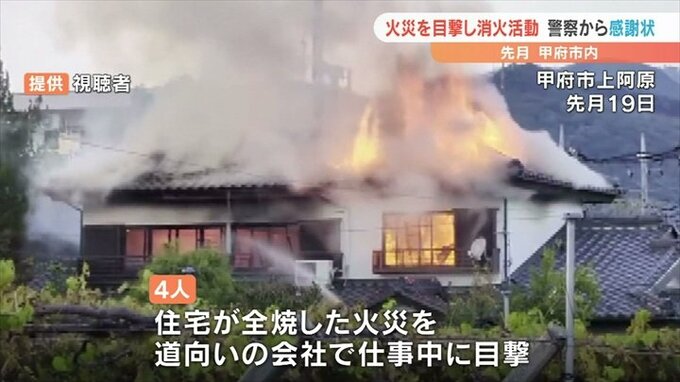 4人は10月19日に、甲府市上阿原で住宅が全焼した火災を道向いの会社で仕事中に目撃しました。