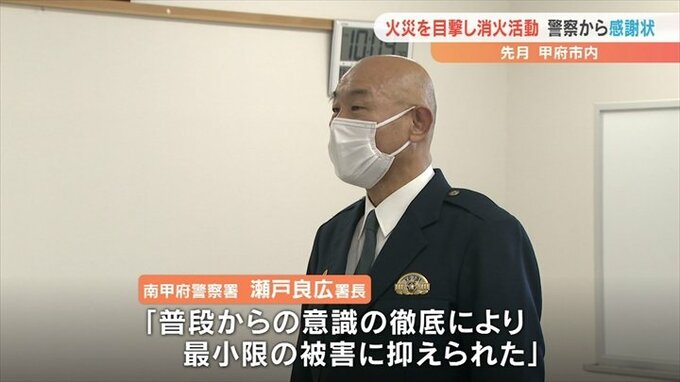 南甲府警察署の瀬戸良広署長は「普段からの意識の徹底により最小限の被害に抑えられた」などと感謝を述べました。