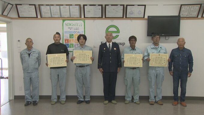 南甲府警察署から感謝状が贈られたのはエルテックグループの小俣慶訓さん、篠田清志郎さん、與儀忍さん、野尻淳一さんの4人です。