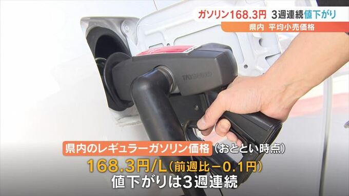 資源エネルギー庁によりますと14日時点の山梨県内のレギュラーガソリンの平均小売価格は1Lあたり168.3円で前の週と比べて0.1円の値下がりとなりました。