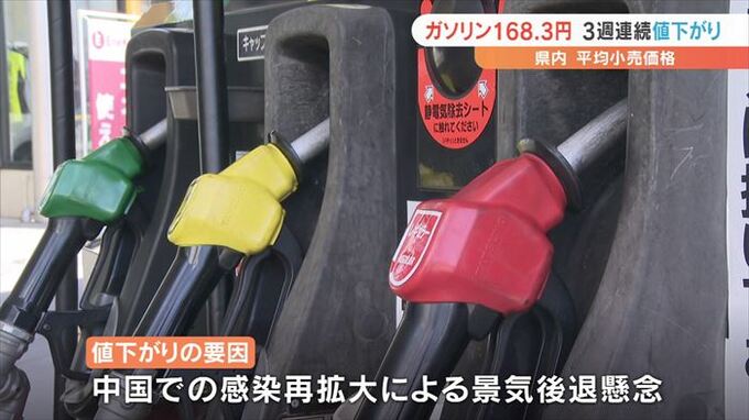 値下がりの要因について資源エネルギー庁は中国での新型コロナウイルスの感染再拡大による景気後退への懸念があることを挙げています。