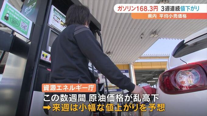 なおこの数週間、原油価格が乱高下を繰り返していることから来週のガソリン価格は小幅な値上がりを予想しています。