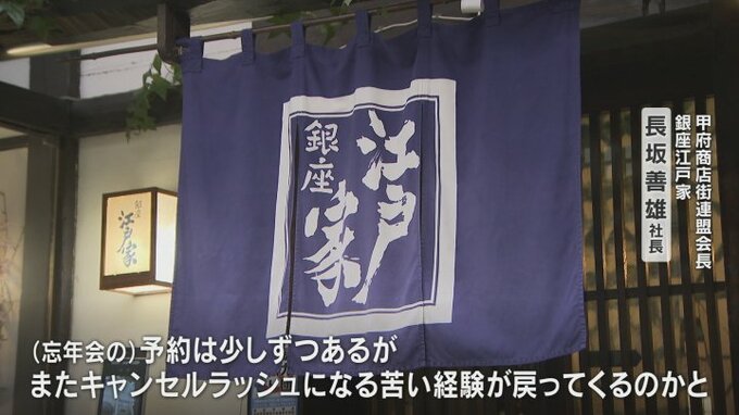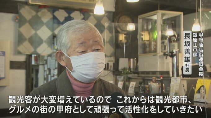 (忘年会の)予約は少しずつあるが、またキャンセルラッシュになる苦い経験が戻ってくるのかと、同業者同士でもその話で持ち切りで大変心配をしている。観光客が大変増えているので これからは観光都市、グルメの街の甲府として頑張って活性化をしていきたい。