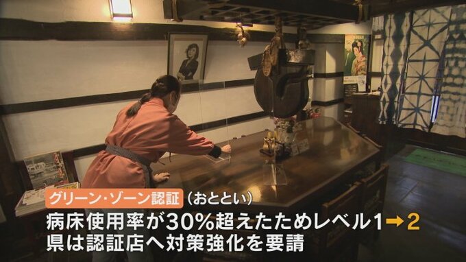 県内の病床使用率が30%を超えたことなどから県は、11月14日にグリーン・ゾーン認証のレベルを1段階引き上げて2とし、認証店に対策の強化を要請しました。