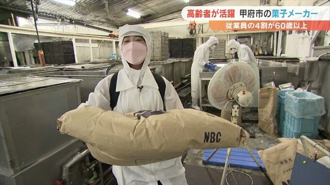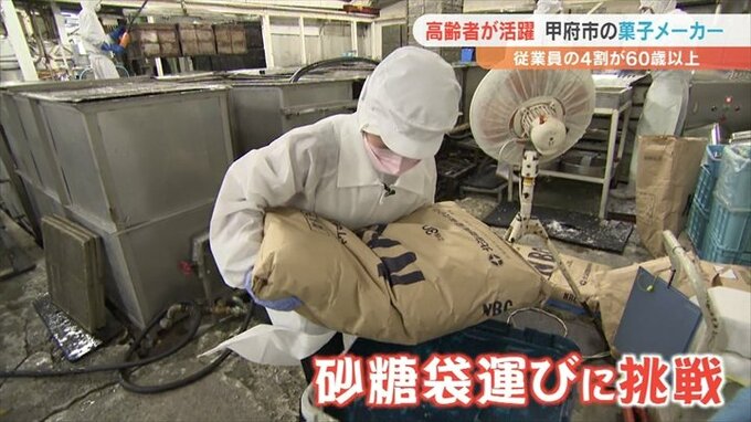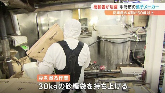豆を煮る作業では30キロの砂糖袋を持ち上げる必要が。