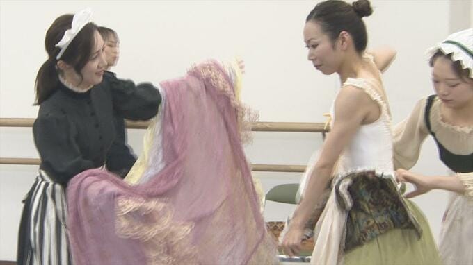 西垣キャスターの役はシンデレラや義理の姉妹にショールを渡す衣装の仕立て屋です。