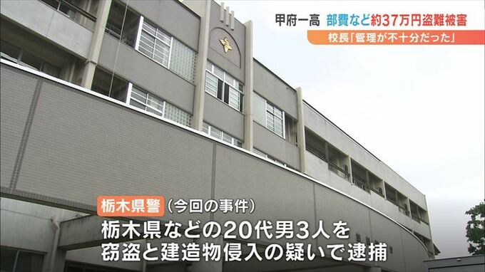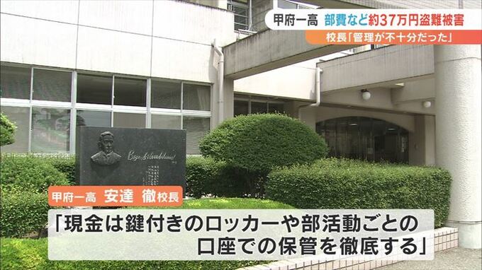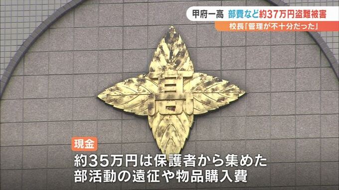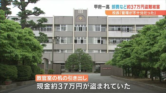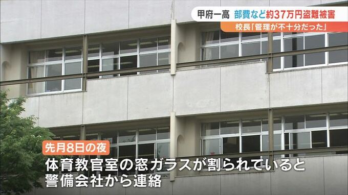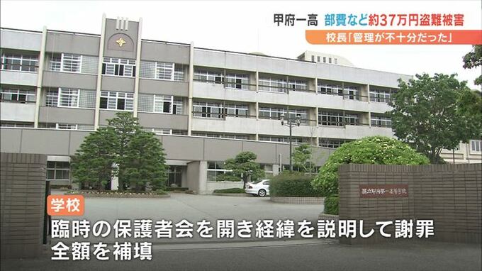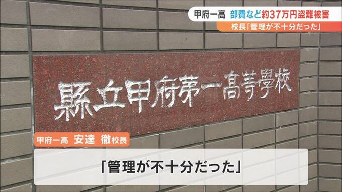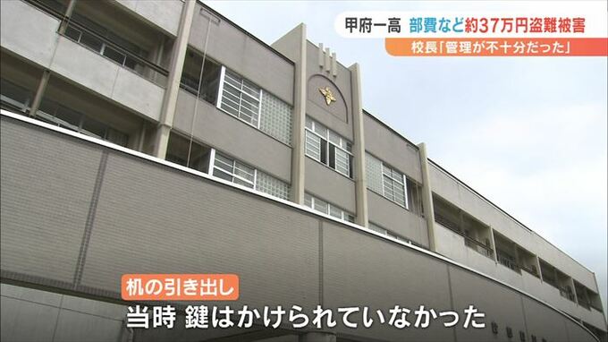 10月、甲府第一高校で、保護者から集めた部費などおよそ37万円が盗まれていたことがわかりました。