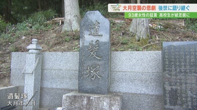 ここには大月空襲で犠牲になった生徒の髪の毛が納められています。