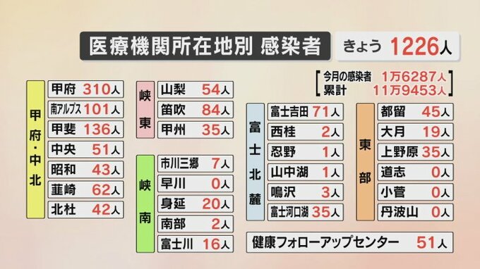新型コロナウイルスについて山梨県内では11月23日に1226人の感染が確認されました。