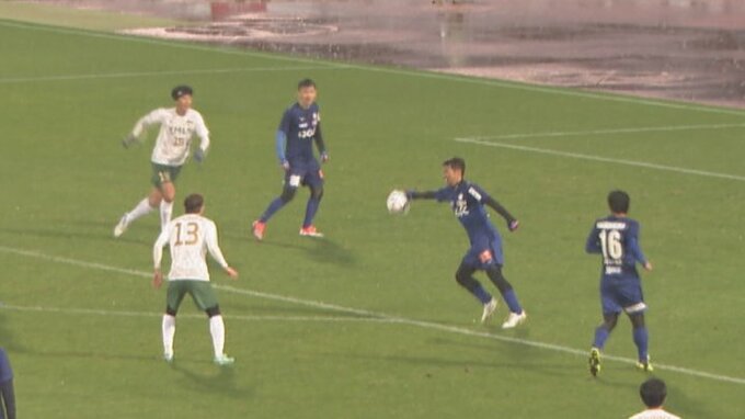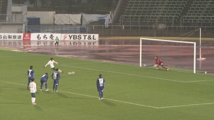 ヴァンフォーレレジェンズが高崎のゴールで先制。しかし元ヴァンフォーレ選手の御厨主審のパスから山梨レジェンズが追いつきます。