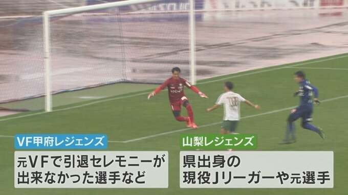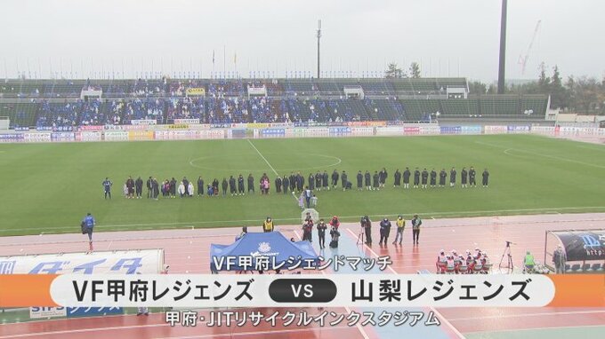 この試合は元ヴァンフォーレに在籍し、コロナ禍で引退セレモニーなどが行えなかった選手を中心としたヴァンフォーレ甲府レジェンズと、県出身の選手でつくる山梨レジェンズの対戦です。