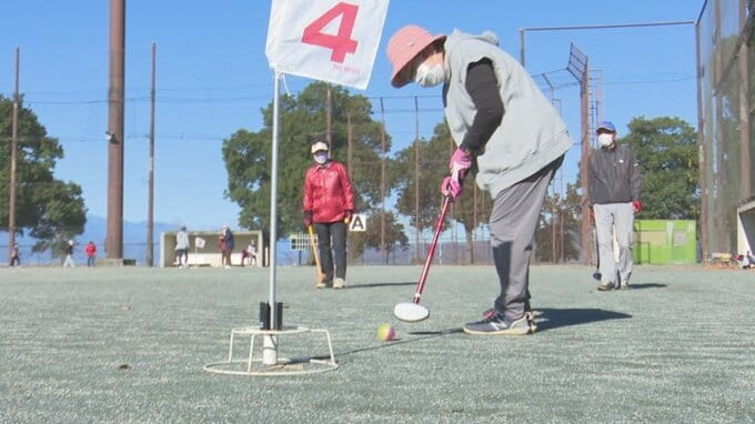 「ホールインワン!」 地域交流や認知症の予防を目的としたグラウンドゴルフ大会 高齢者およそ60名が参加 2022年11月24日(木) 17:04 国内 初心者も数多く参加したグラウンドゴルフの大会が山梨県笛吹市で開催されました。参加者:あっち行っちゃった。グラウンドゴルフはホールポストに入れる打数を競う競技で、気軽に楽しめることから高齢者を中心に人…