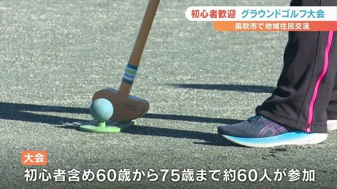 11月24日、山梨県笛吹市で行われた大会には、初心者を含め60歳から75歳の約60人が参加しました。
