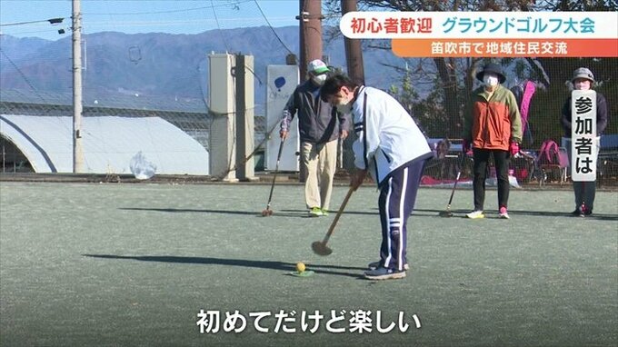 初心者も数多く参加したグラウンドゴルフの大会が山梨県笛吹市で開催されました。