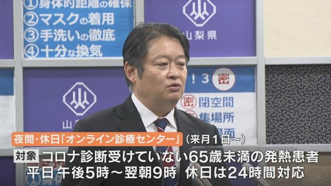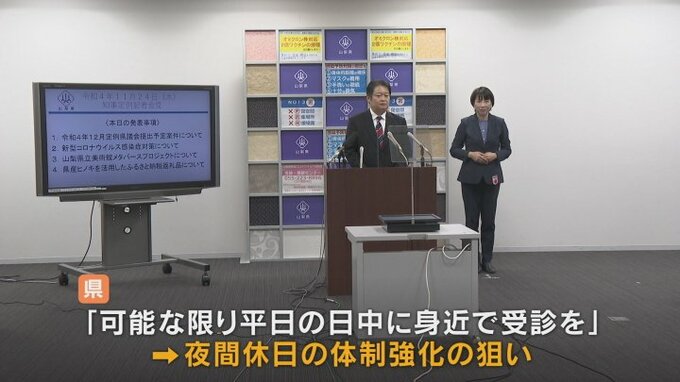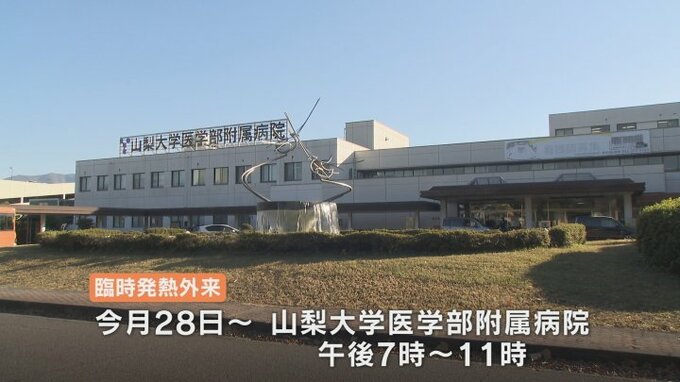 長崎知事は新型コロナウイルスの第8波とインフルエンザの同時流行に備え、山梨大学医学部附属病院に夜間の臨時発熱外来を、11月28日から開設する事を明らかにしました。