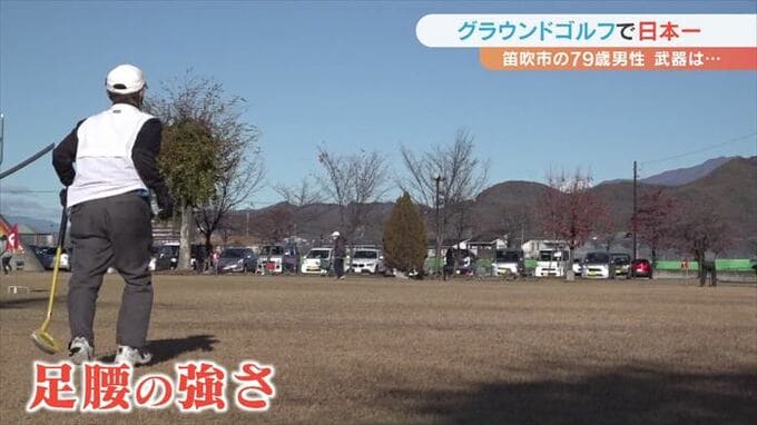 練習は週5日。グラウンドゴルフ漬けの毎日で、フォームが体に沁みついています。自営業の食品スーパーで身につけた足腰の丈夫さも自慢です。