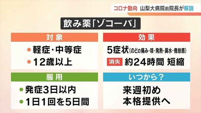 そういった中、今週ですね、飲み薬についてのニュースもありました。ゾコーバというものなんですけれども、武田さん改めてその薬の効果ですとか、特徴を解説をお願いできますでしょうか?